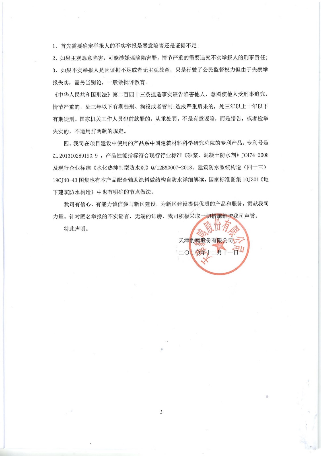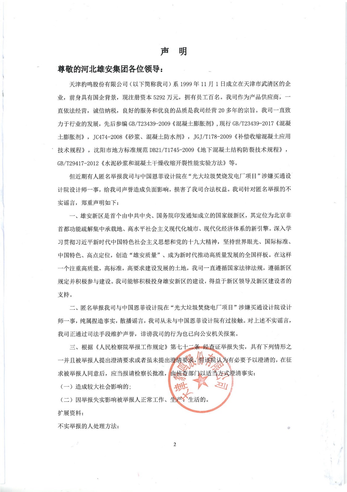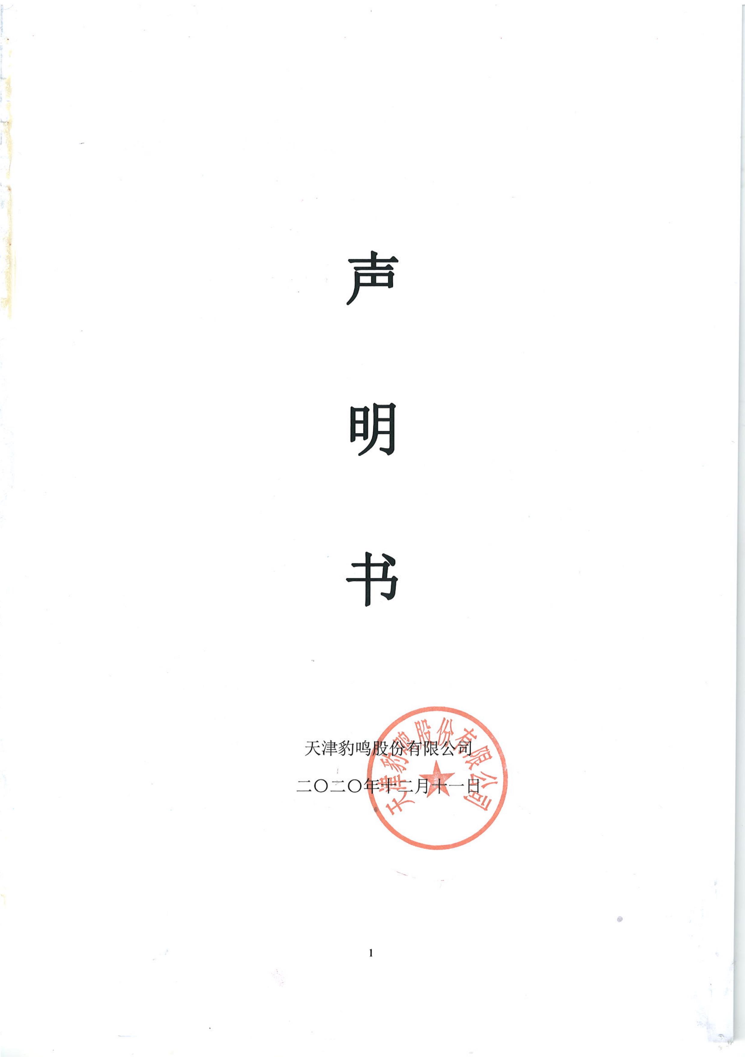 天津豹鸣股份有限公司声明书